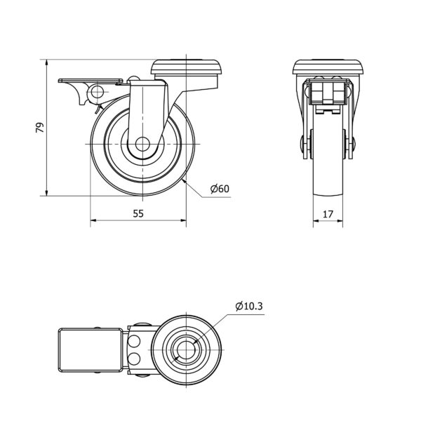 Rueda poliamix giratoria con freno Alex diametro 60 mm. modelo TW0177 EAN 8422202001777