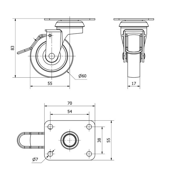Rueda poliamix giratoria con freno Alex diametro 60 mm. modelo TW0194