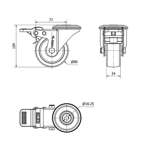 Rueda poliamix giratoria con freno Alex diametro 80 mm. modelo 2-2349