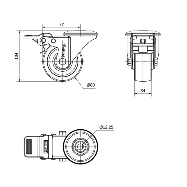 Rueda poliamix giratoria con freno Alex diametro 80 mm. modelo 2-4128