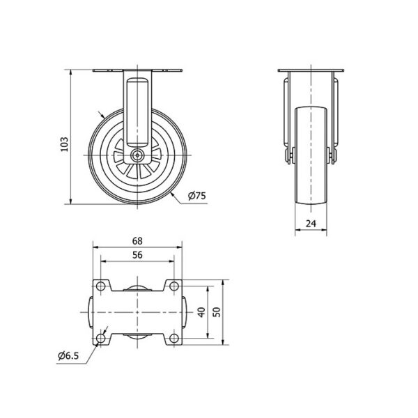 Rueda policarbonato fija Alex diametro 75 mm. modelo 1-0605 EAN 8422202106052