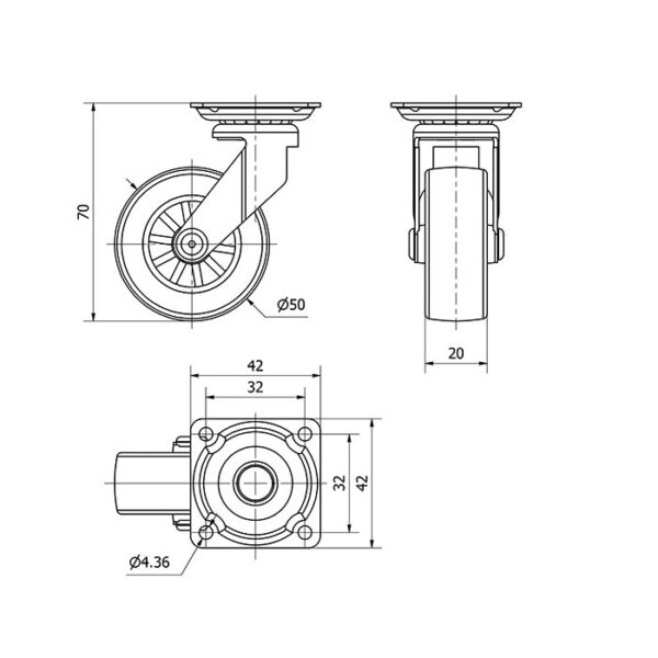 Rueda policarbonato giratoria Alex diametro 50 mm. modelo 1-0591