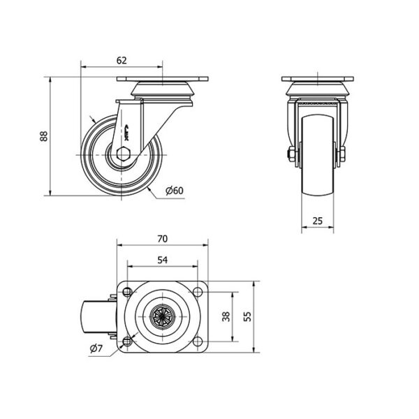 Rueda policarbonato giratoria Alex diametro 60 mm. modelo 2-2274