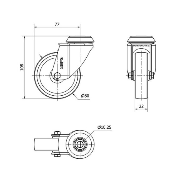 Rueda policarbonato giratoria Alex diametro 80 mm. modelo 2-2278