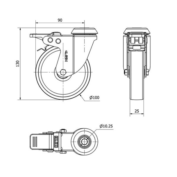 Rueda policarbonato giratoria con freno Alex diametro 100 mm. modelo 2-2151