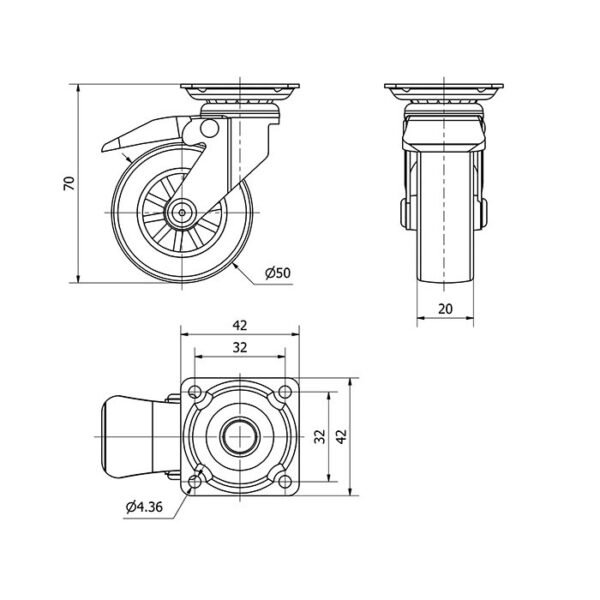 Rueda policarbonato giratoria con freno Alex diametro 50 mm. modelo 1-0519