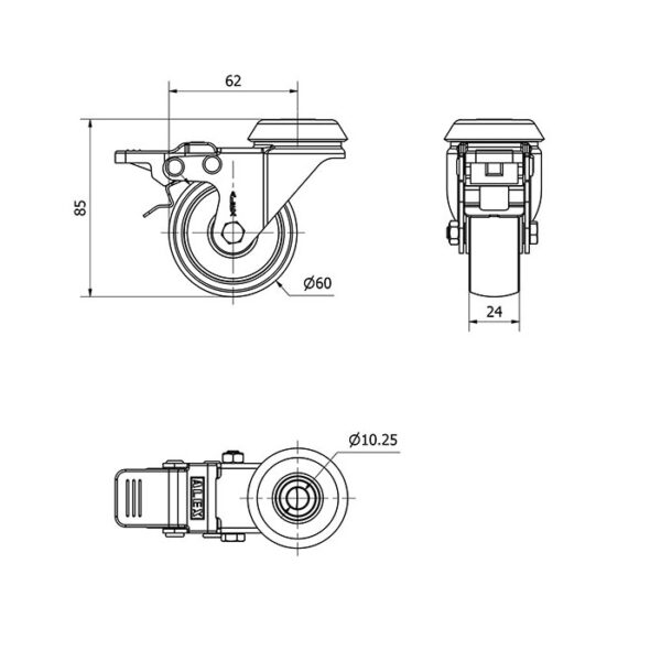 Rueda policarbonato giratoria con freno Alex diametro 60 mm. modelo 2-4809