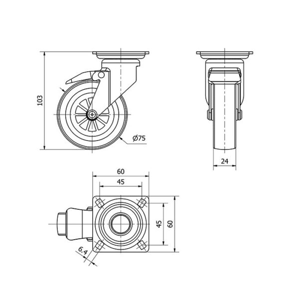 Rueda poliamida negra fija Alex diametro 100 mm. TW0319