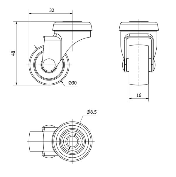 Rueda polipropileno giratoria Alex diametro 30 mm. modelo 3-0005