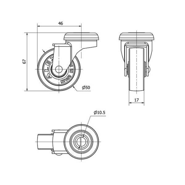 Rueda polipropileno giratoria Alex diametro 50 mm. modelo 1-0172 EAN 8422202101729