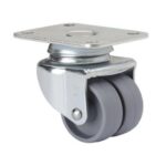 La serie de ruedas Alex B-BP son de polipropileno gris, indicadas para soportar cargas hasta de 40 kg. Se utilizan en expositores, muebles, estanterías, taburetes, percheros, carros de hostelería, ebanisterías, stands, carros de limpieza, mesas de ordenador, pequeño mobiliario, etc.; ya que son indeformables y con un desplazamiento fácil.
