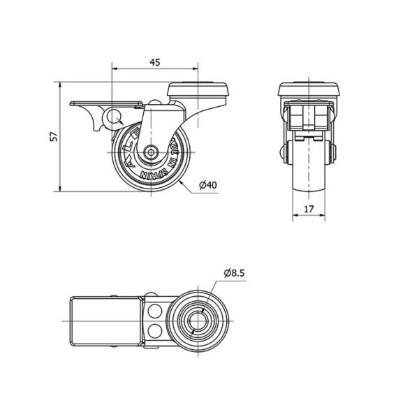 Rueda polipropileno giratoria con freno Alex diametro 40 mm. modelo 1-0544