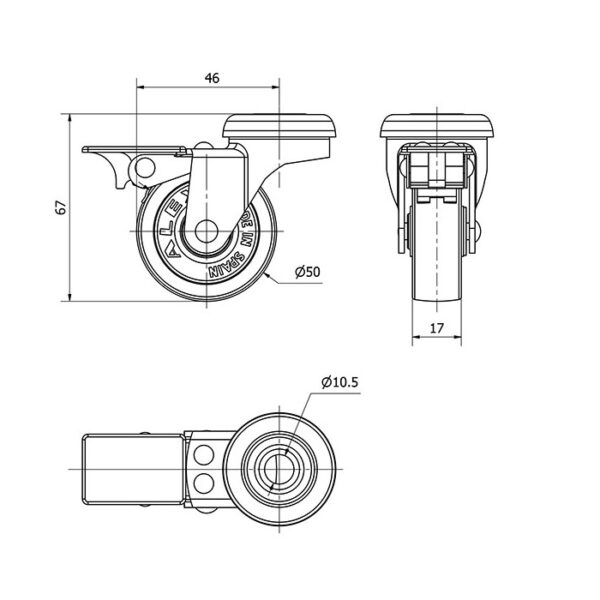 Rueda polipropileno giratoria con freno Alex diametro 50 mm. modelo 1-0545 EAN 8422202105451