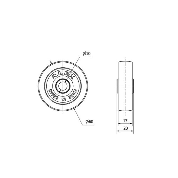 Rueda polipropileno-plastico aro suelto Alex diametro 60 mm. modelo 1-0310 EAN 8422202103105