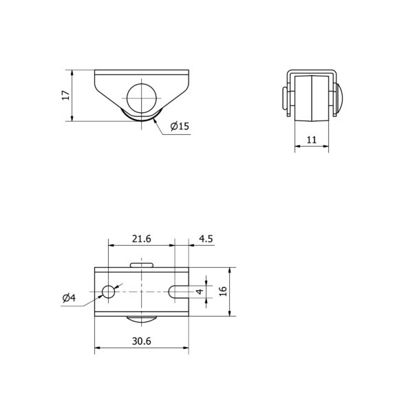 Rueda polipropileno-plastico fija Alex diametro 15 mm. modelo TW0287