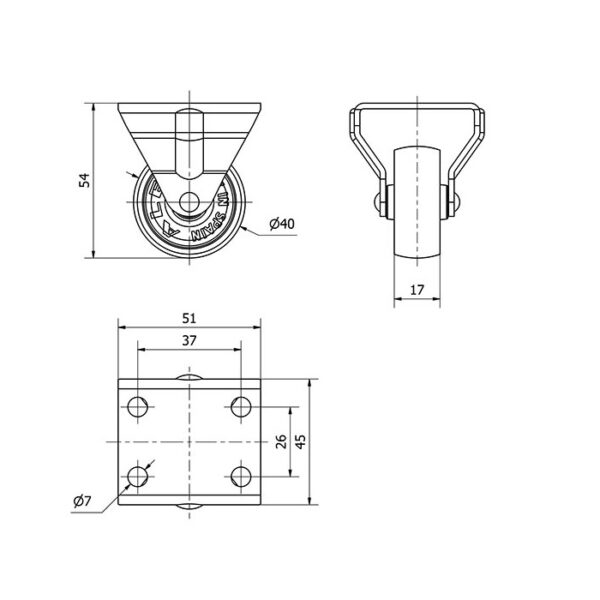 Rueda polipropileno-plastico fija Alex diametro 40 mm. modelo 2-0045