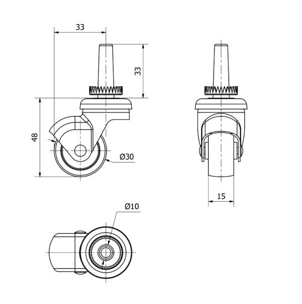 Rueda polipropileno-plastico giratoria Alex diametro 30 mm. 3-0021