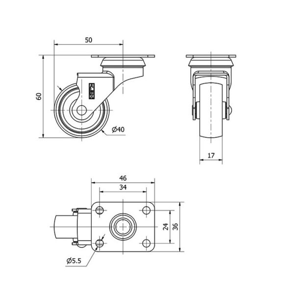 Rueda polipropileno-plastico giratoria Alex diametro 40 mm. 1-0715