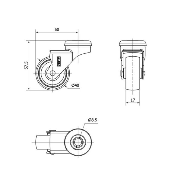 Rueda polipropileno-plastico giratoria Alex diametro 40 mm. 1-0719