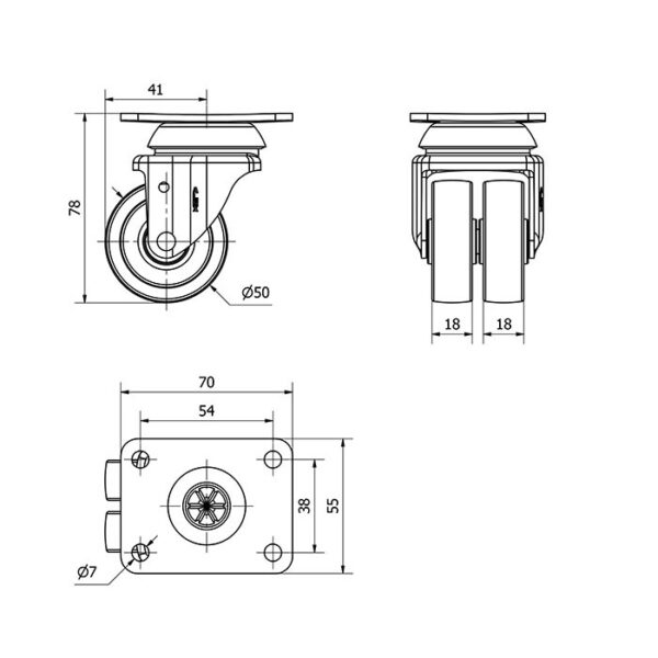 Rueda polipropileno-plastico giratoria Alex diametro 50 mm. 2-0039