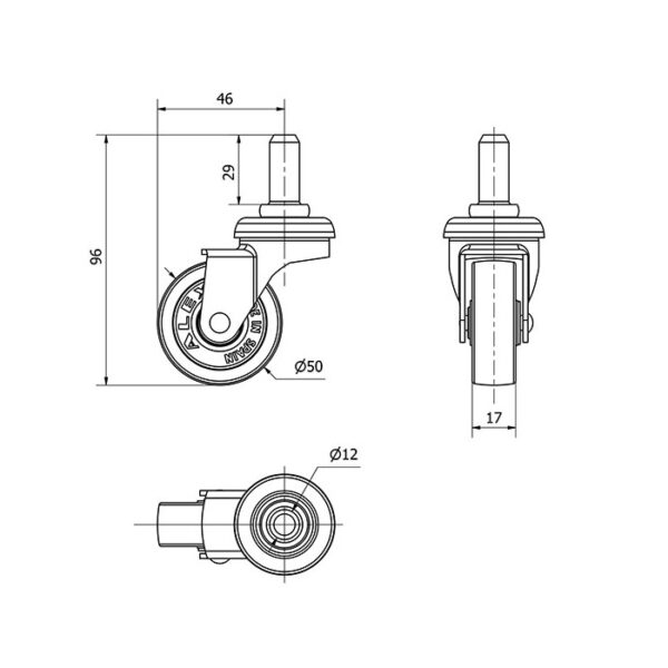 Rueda polipropileno-plastico giratoria Alex diametro 50 mm. modelo 1-0225