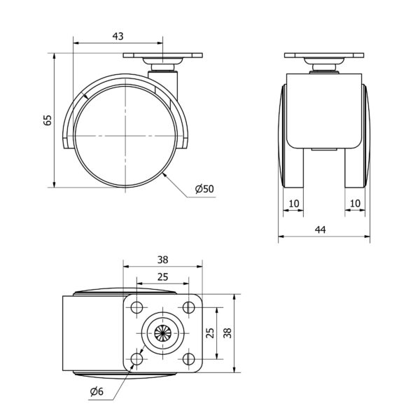 Rueda polipropileno-plastico giratoria Alex diametro 50 mm. modelo TW0110