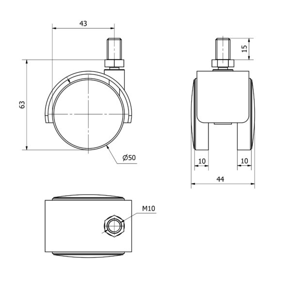 Rueda polipropileno-plastico giratoria Alex diametro 50 mm. modelo TW0115