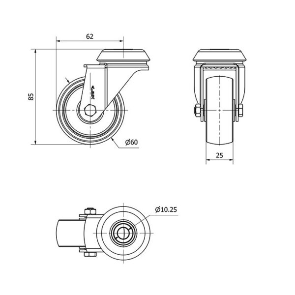 Rueda polipropileno-plastico giratoria Alex diametro 60 mm. 1-0174