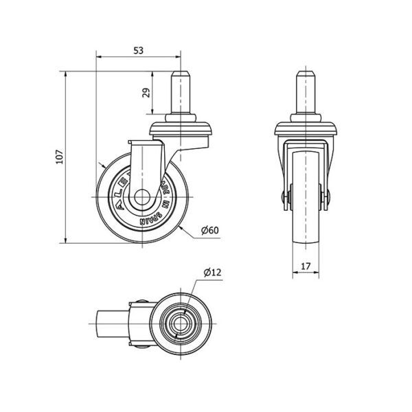 Rueda polipropileno-plastico giratoria Alex diametro 60 mm. 1-0228