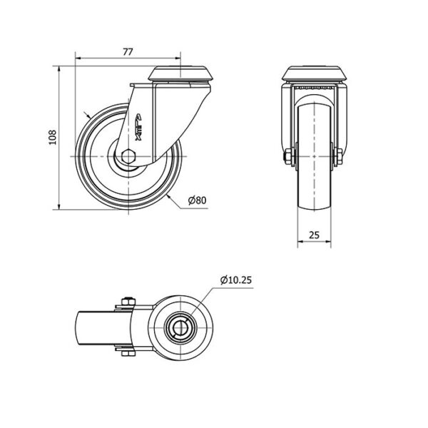 Rueda polipropileno-plastico giratoria Alex diametro 80 mm. modelo 2-1913