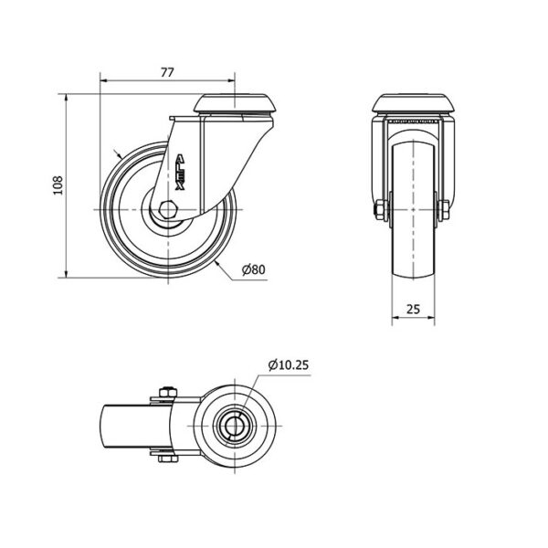 Rueda polipropileno-plastico giratoria Alex diametro 80 mm. modelo 2-3065