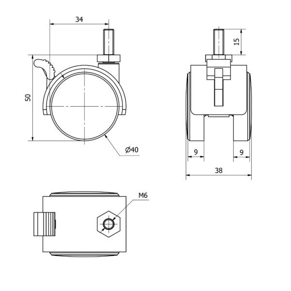 Rueda polipropileno-plastico giratoria con freno Alex diametro 40 mm. modelo TW0116 EAN 8422202001166