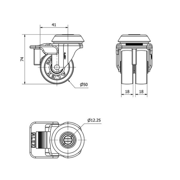 Rueda polipropileno-plastico giratoria con freno Alex diametro 50 mm. modelo 1-0568 EAN 8422202105680
