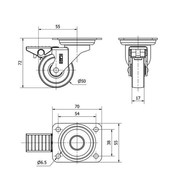 Rueda polipropileno-plastico giratoria con freno Alex diametro 50 mm. modelo 1-0723 EAN 8422202107233
