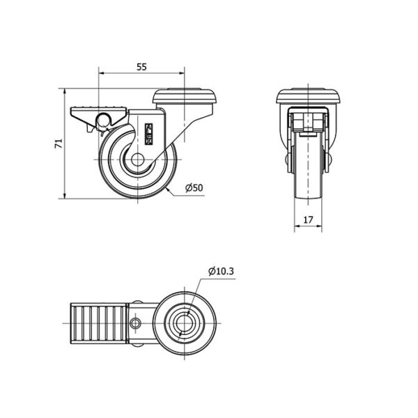Rueda polipropileno-plastico giratoria con freno Alex diametro 50 mm. modelo 1-0726 EAN 8422202107264
