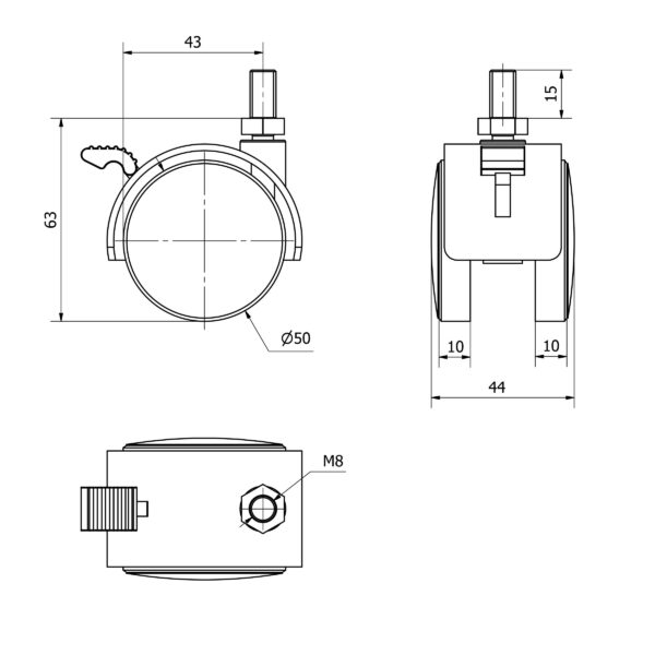 Rueda polipropileno-plastico giratoria con freno Alex diametro 50 mm. modelo TW0117