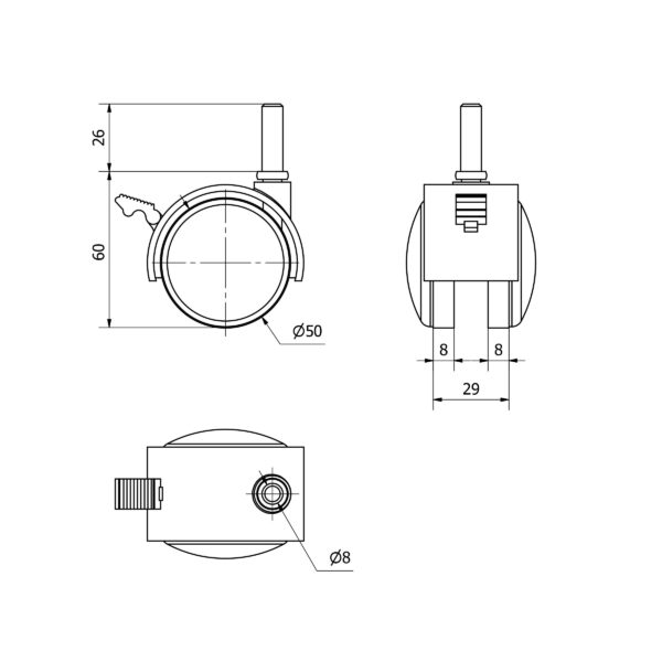 Rueda polipropileno-plastico giratoria con freno Alex diametro 50 mm. modelo TW0286 EAN 8422202002866