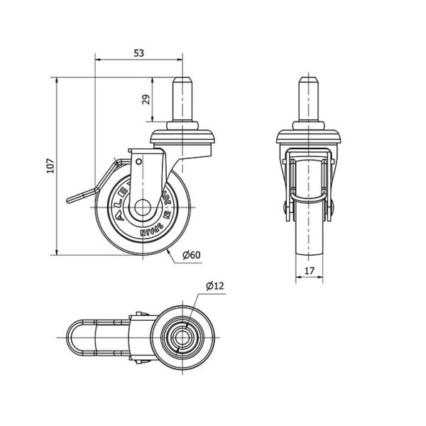 Rueda polipropileno-plastico giratoria con freno Alex diametro 60 mm. modelo 1-0504
