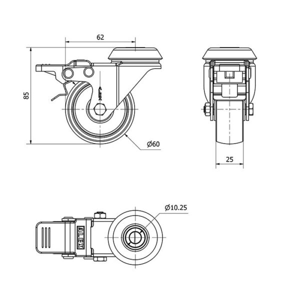 Rueda polipropileno-plastico giratoria con freno Alex diametro 60 mm. modelo 2-4479