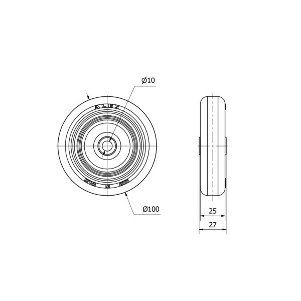 Rueda poliuretano aro suelto Alex diametro 100 mm. modelo 2-2475