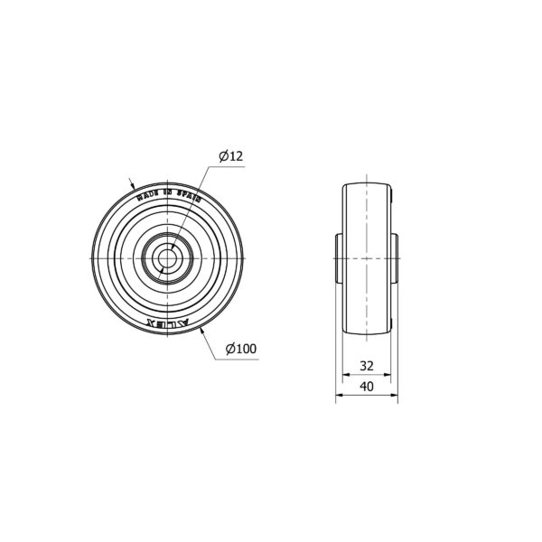 Rueda poliuretano aro suelto Alex diametro 100 mm. modelo 2-2963