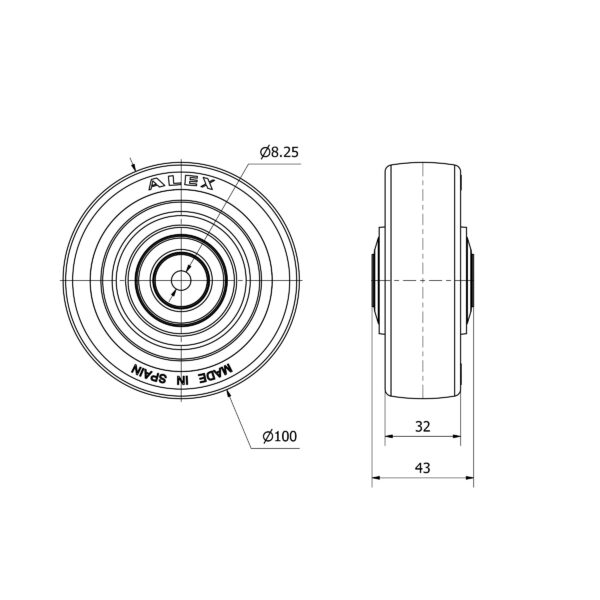 Rueda poliuretano aro suelto Alex diametro 100 mm. modelo 2-4199 EAN 8422202241999