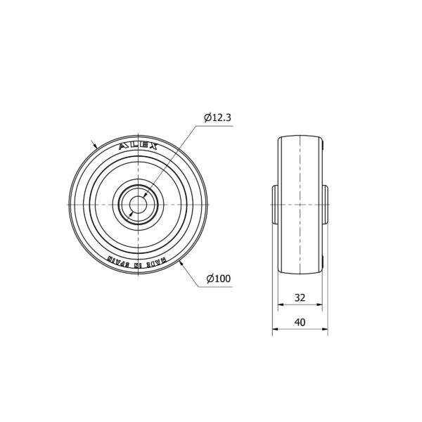 Rueda poliuretano aro suelto Alex diametro 100 mm. modelo 2-4680