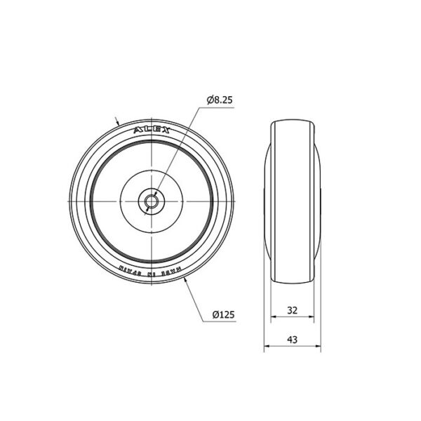 Rueda poliuretano aro suelto Alex diametro 125 mm. modelo 2-1037