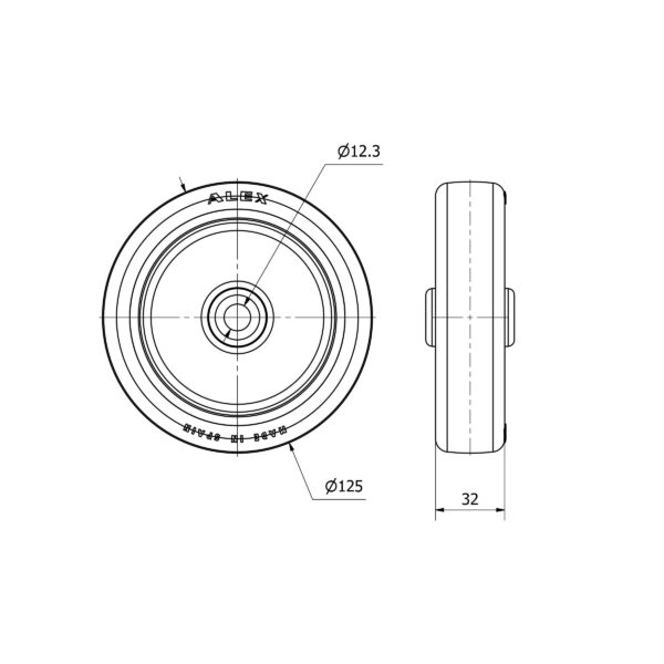 Rueda poliuretano aro suelto Alex diametro 125 mm. modelo 2-2456
