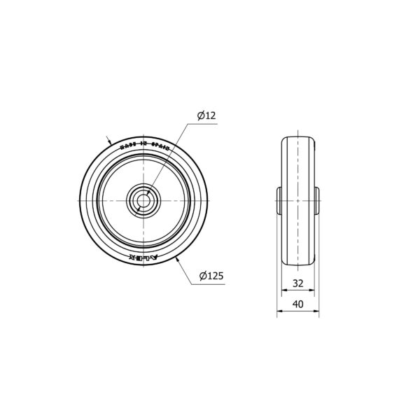 Rueda poliuretano aro suelto Alex diametro 125 mm. modelo 2-2481 EAN 8422202224817