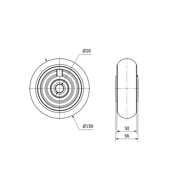 Rueda poliuretano aro suelto Alex diametro 150 mm. modelo 2-3313
