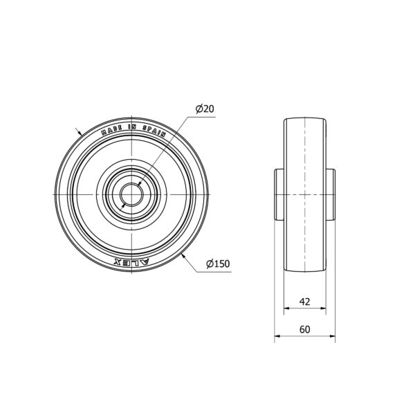 Rueda poliuretano aro suelto Alex diametro 150 mm. modelo 2-3441