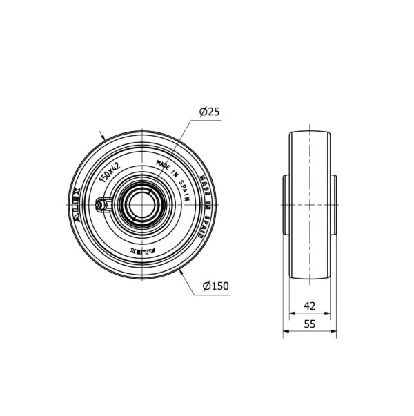 Rueda poliuretano aro suelto Alex diametro 150 mm. modelo 4-0485 EAN 8422202404851