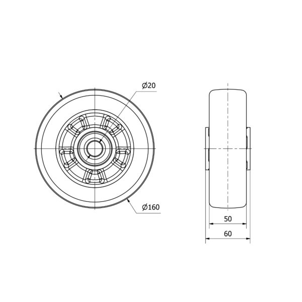 Rueda poliuretano aro suelto Alex diametro 160 mm. modelo 4-1654